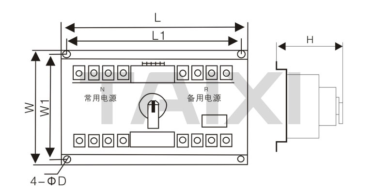 TXQ4雙電源自動電源切換開關(guān)主要由電源轉(zhuǎn)換執(zhí)行斷路器組成,開關(guān)工作有三個狀態(tài)位置供用戶選擇:常用電源(N)合、雙分、備用電源(R)合,開關(guān)具有體積小、重量輕、工作穩(wěn)定,使用方便等。