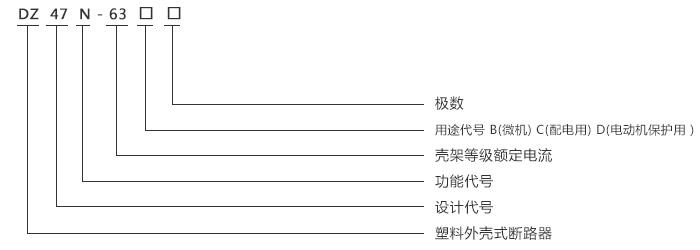 用途代號:B型(電瓶車斷路器); C型(配電用); D型(電動機保護用)。
