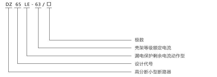 產(chǎn)品型號和名稱:如DZ65LE漏電斷路器/施耐德C65LE類型斷路器類型