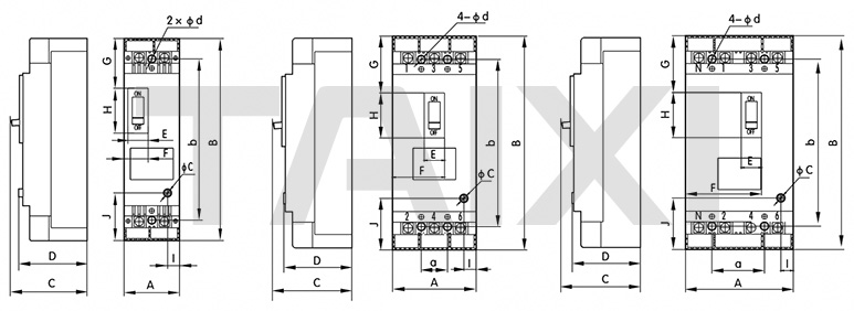 注:A型N極不安裝過電流脫扣元件,且N極始終接通,不與其它三極一起分合;